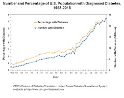 Since the late 1950’s, diagnosed diabetes was on an upswing, but still relatively small as a percentage of the population. However, since the 1980’s, the incidence of obesity & diabetes (primarily Type 2), has increased exponentially and continues to climb.