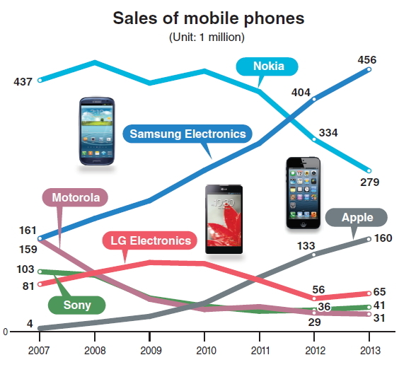 In the 90’s, growing mobile phone sales created a global battle ground among suppliers. In Europe, Nokia & Ericsson were the dominant mobile phone suppliers, while in the U.S., Motorola was the dominant player. In South Korea, where technology was moving at light speed, Samsung & LG were the two biggest names in mobile.