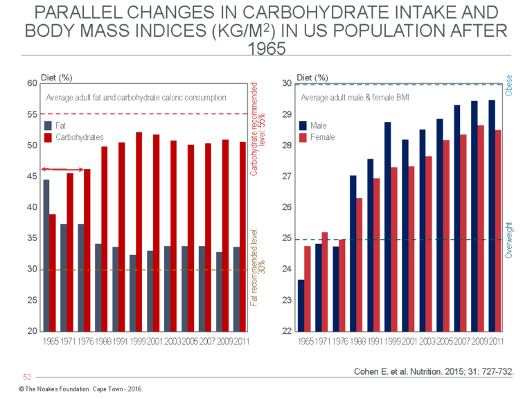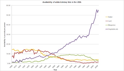 Sadly, this has been the narrative for the last 40+ years, and not coincidentally, since the late 1970’s, we have seen obesity, type 2 diabetes (T2D), chronic illness, and metabolic syndrome become an epidemic among our population. During this time we’ve seen the establishment of the American Dietary Guidelines, as well as major associations like the American Heart Association, the CDC and the American Diabetes Association trumpet the message of “low-fat, lots of fruits and grains, and limited saturated fats” as the key to a healthy metabolic state. We have seen a reduction in the amount of saturated fats consumed, a HUGE increase in the use of polyunsaturated vegetable oils, and a food supply that is so driven by processed foods that 67% of the food consumed by children are processed. So, how has this all worked out? Horribly…