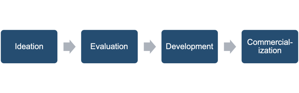 - Commercialization: Once the finished product has been developed, passed the hurdles for success outlined upfront and has commercial opportunity, it is set to launch. This is the commercialization & delivery phase where sales, marketing and supply chain are ensuring the product is ready to make, ship and sell while R&D, legal and finance are ensuring freedom to practice, claims and industry or regulatory approvals are cleared.